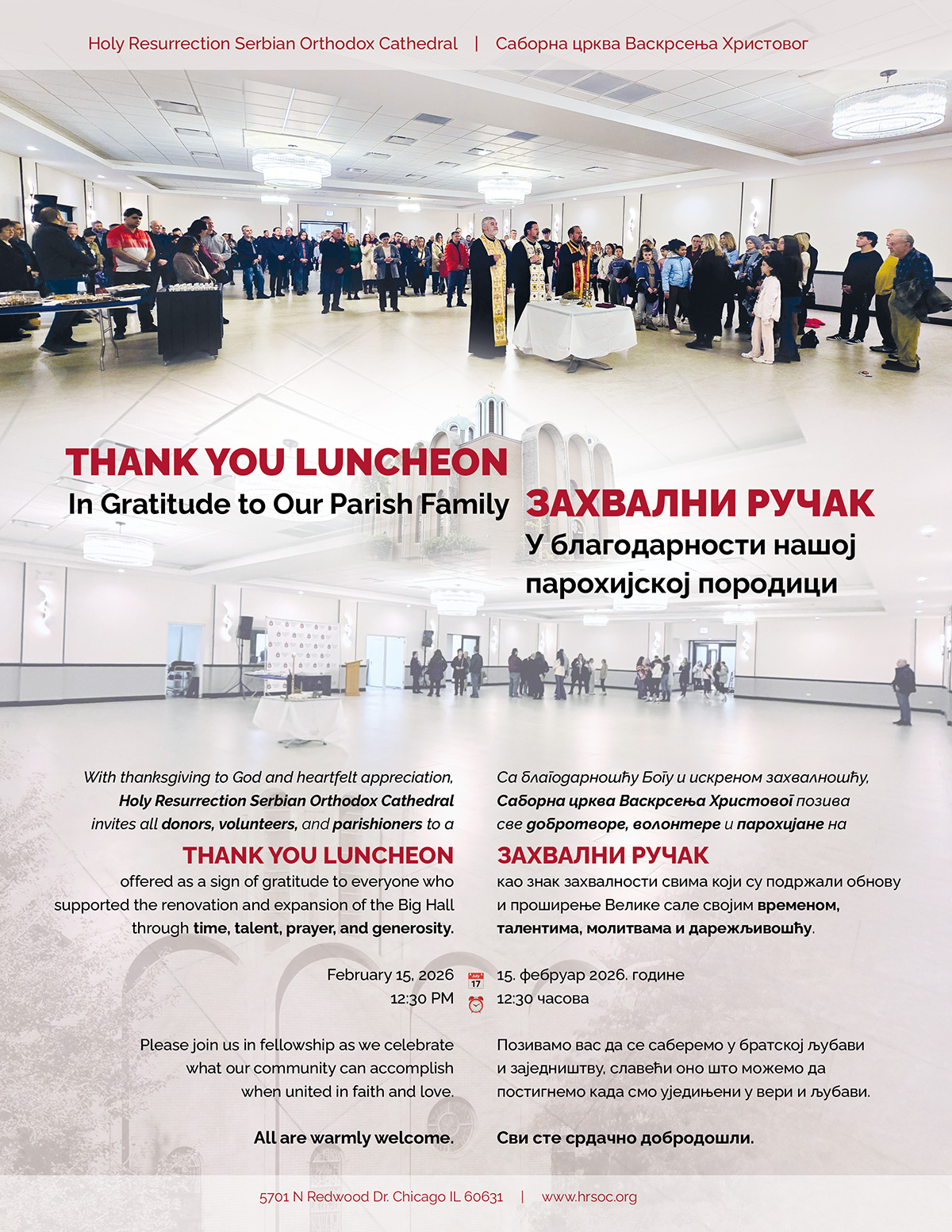 Chicago, IL – January 18, 2026 Today, the faithful of the Holy Resurrection Serbian Orthodox Cathedral were blessed by the pastoral visit of His Grace