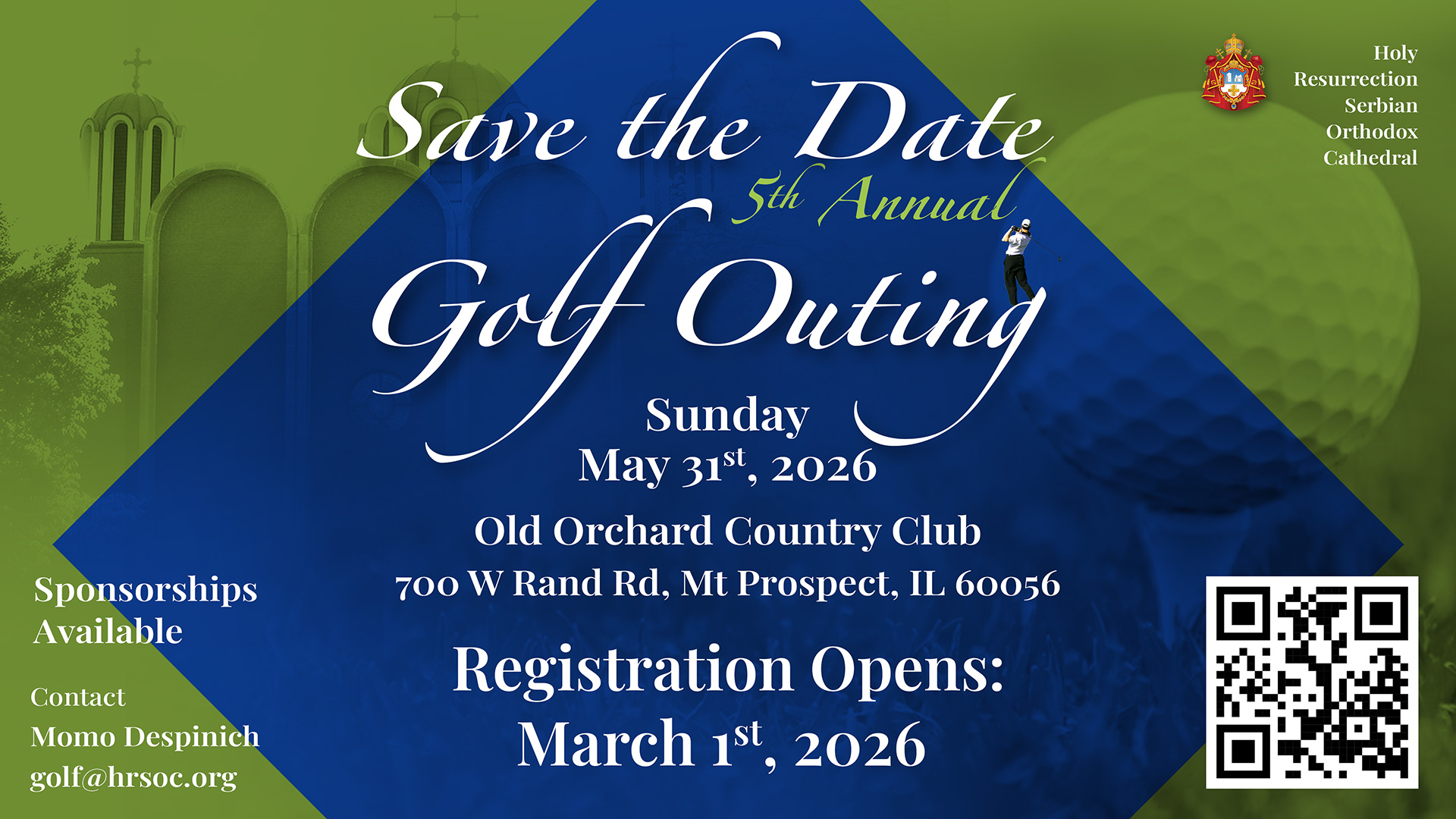 The Holy Resurrection Serbian Orthodox Cathedral is pleased to announce its 5th Annual Golf Outing, to be held on Sunday, May 31, 2026, at Old Orchard Country Club in