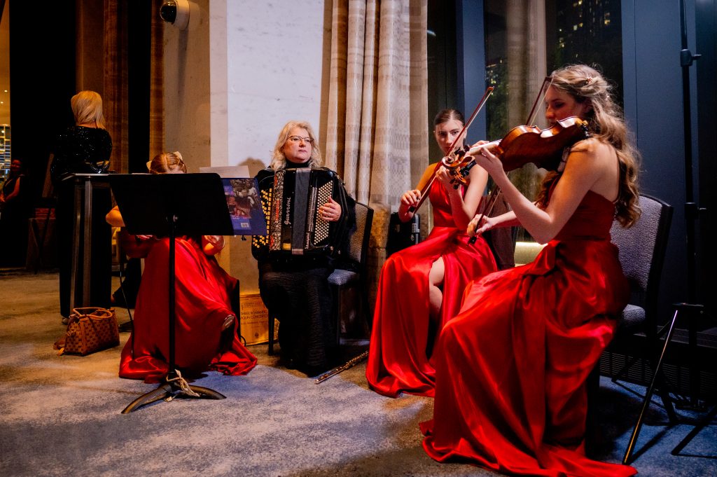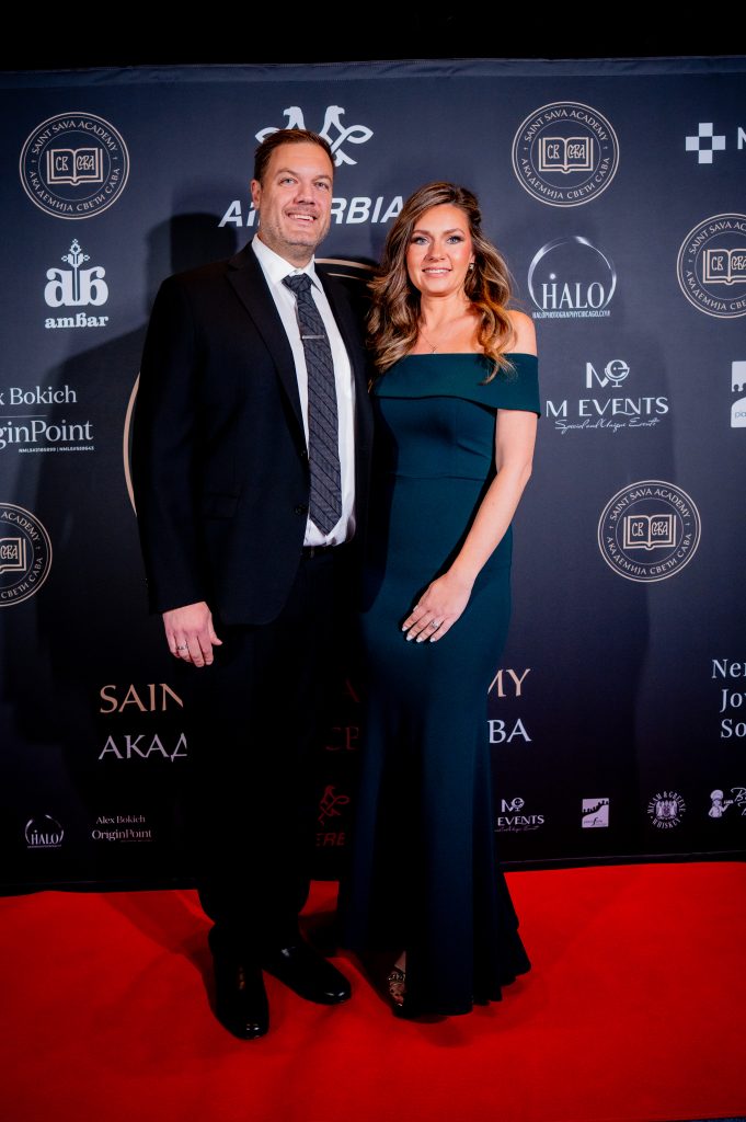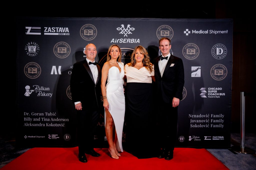 The evening was filled with art, inspiration, and fellowship. Guests enjoyed performances by world-class artists, including Grammy-nominated violinist Philippe Quint, soprano Marija Jelić, Dragana Rakićević, and Mile Vujnović, as well as ensembles of traditional Serbian music and dance. Among the speakers were Dr. Branko Bojović, renowned plastic surgeon; Miss Illinois Nikolina Vujčić; conductor and financial advisor Vladimir Kulenović; and Vlado Zrnić of the Serbian American Student-Athletes Association. The program was warmly and elegantly hosted by Jelena Gavrilović, a well-known Serbian actress and singer, and George Petković, Vice President of Air Serbia for the Americas. The gala also featured an exclusive silent auction with luxury items and unique cultural experiences, while the formal dinner provided an opportunity to celebrate the achievements of the students and the Academy’s vision for growth.